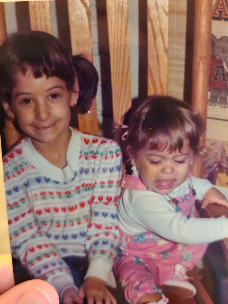 When I was born, we lived down by the river. At a few months old, my parents’ dog Night passed away. My sister commented, “Well at least we still have Ashley”. I guess I was a consolation prize at best. Years later, I can remember my hair being long and down my back. I hated having my hair fixed or brushed. I can remember my sister angrily hitting me in the back of my head with the back of the brush because of my refusal to allow her to play with my hair. My mom even bought a white Astro van to have separate seating for us as we could not be near one another without a fight ensuing. If you are sibling then I am sure you can relate. It’s a tough love in the beginning, almost forced by your parents’ choice to have more than one child.